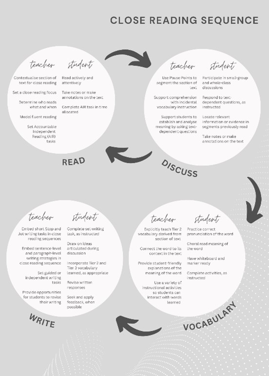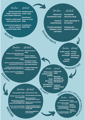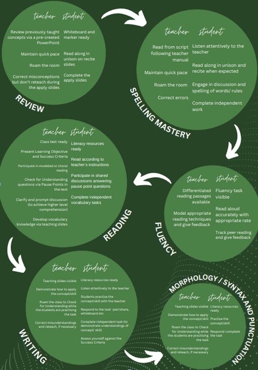 Each component prioritises methods supported by cognitive science and educational research to enable teachers to deliver high impact literacy instruction.